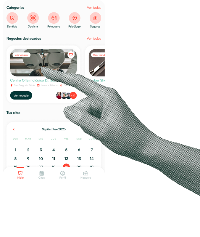 Descargas la app y regístrate. La cuenta te permite guardar tus citas y gestionarlas desde un solo lugar.